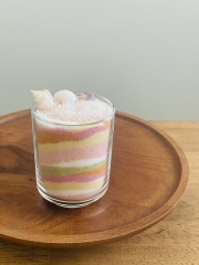 ガラス容器の中にカラフルな砂のようなキャンドルを自由に重ねて自分だけの砂浜キャンドルを作ります。